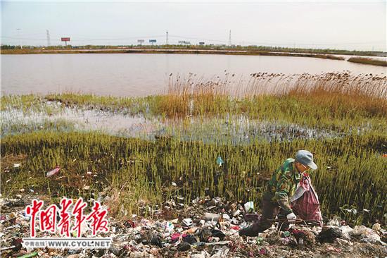 4月14日,河北省霸州市勝芳鎮(zhèn)中亭河,遠(yuǎn)遠(yuǎn)望去河水呈土紅色,河岸的泥洼和水草中已是很深的鐵銹色。河邊坐落著大大小小鋼管廠、化工廠、家具廠、玻璃廠、金屬?gòu)S……