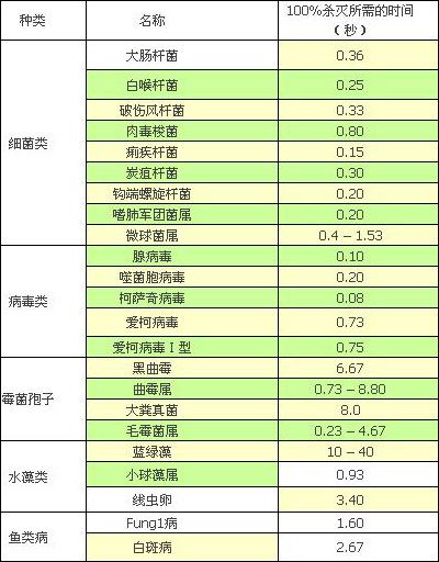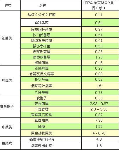 紫外線對殺滅各種細(xì)菌病毒殺滅所需時間